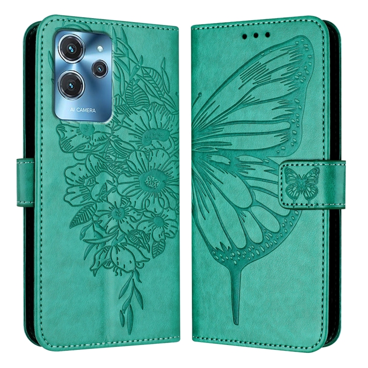 Funda de Cuero para Oukitel C32 con Mariposa en Relieve (Verde)