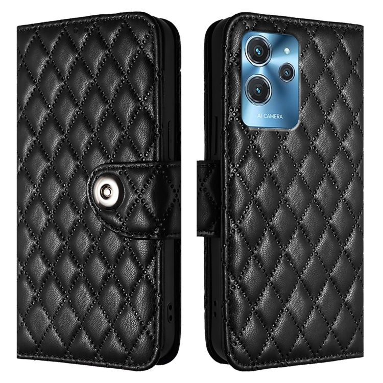 Funda para Oukitel C32 de Cuero con Tapa, Textura Rómbica y Cordón (Negro)