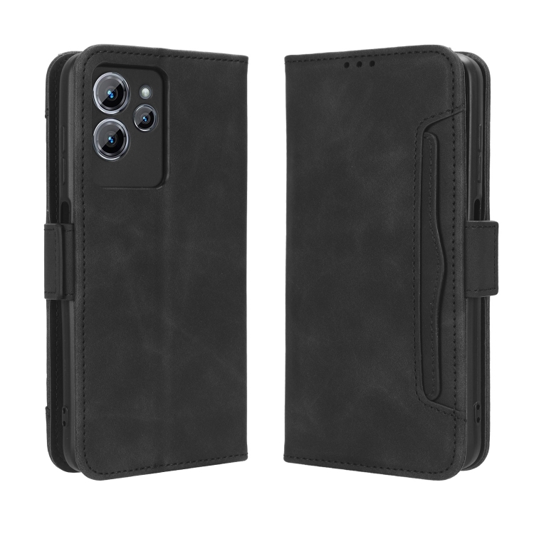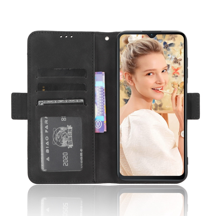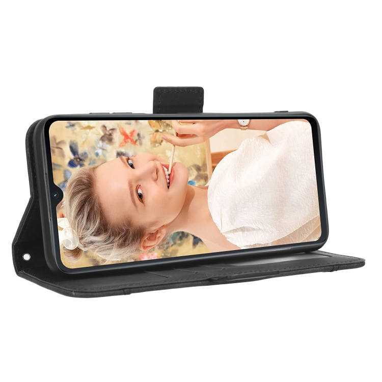 Funda de Cuero para Oukitel C32 con Textura Becerro y Ranuras para Tarjetas (Negro)