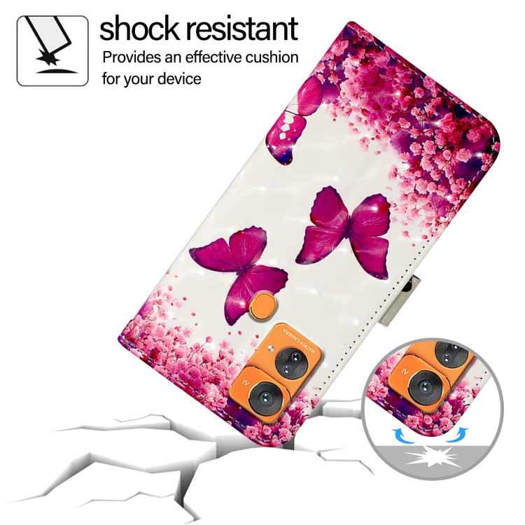Funda para Oukitel C33 de Cuero con Tapa Horizontal y Pintura 3D (Mariposa Rosa)