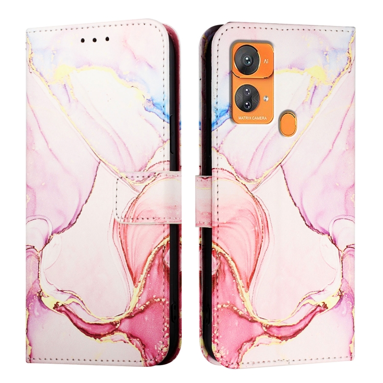 Funda de Cuero para Oukitel C33 Pt003 con Tapa y Patrón de Mármol (Oro Rosa)