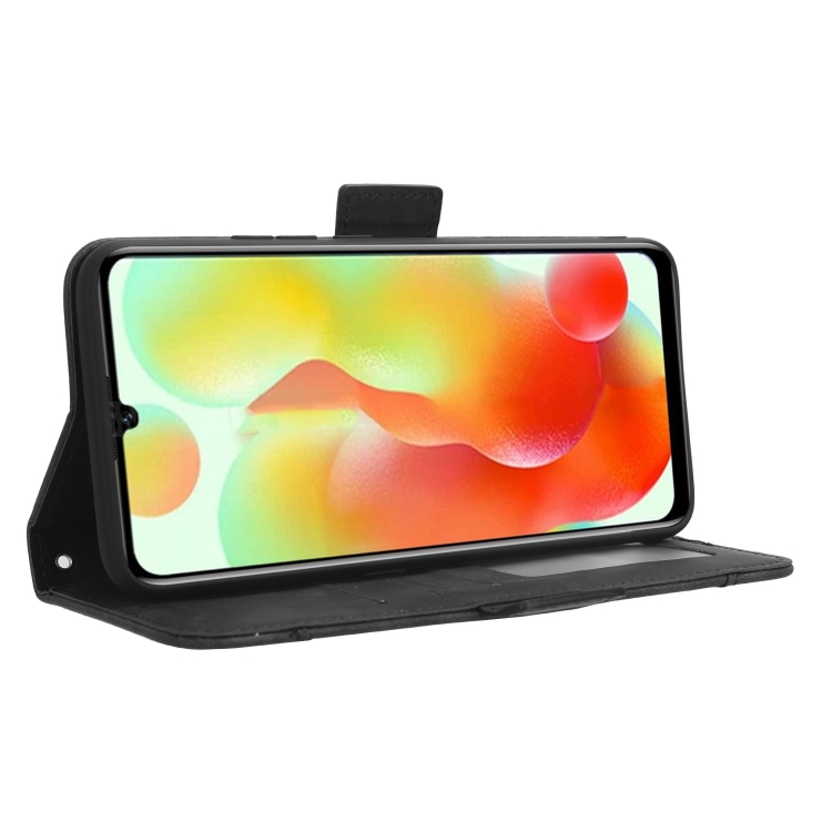 Funda de Cuero para Oukitel C33 con Textura Becerro y Ranuras para Tarjetas (Negro)