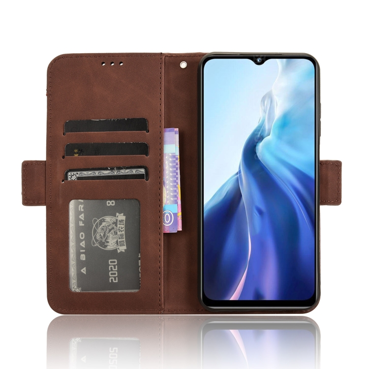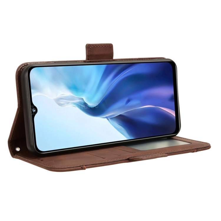 Funda de Cuero para Oukitel C35 / C36 con Textura Becerro y Ranuras para Tarjetas (Marrón)