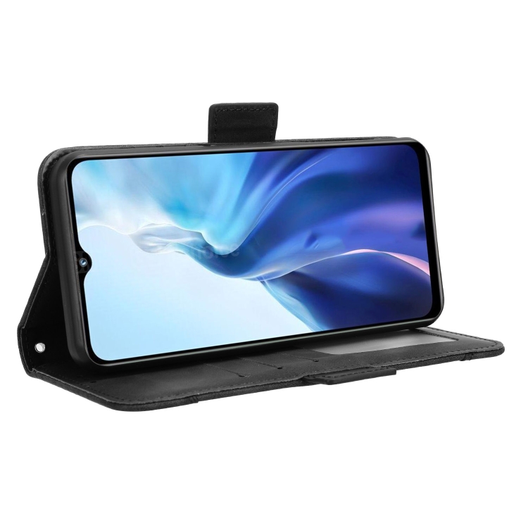 Funda de Cuero para Oukitel C35 / C36 con Textura Becerro y Ranuras para Tarjetas (Negro)