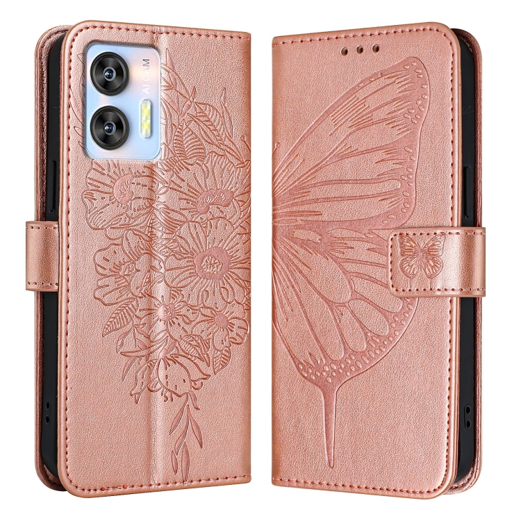 Funda de Cuero para Oukitel C36 y C35 con Mariposa en Relieve (Oro Rosa)