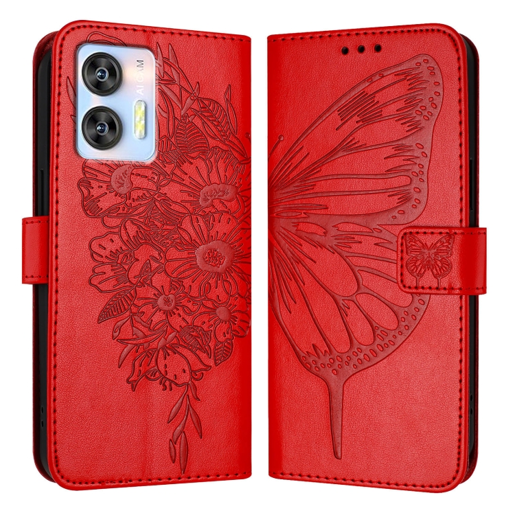 Funda de Cuero para Oukitel C36 y C35 con Mariposa en Relieve (Rojo)