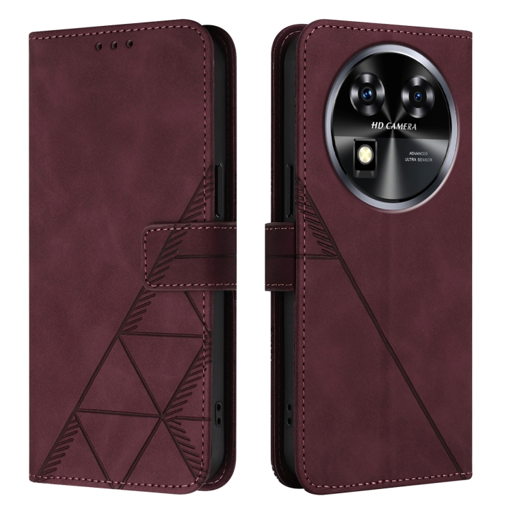 Funda para Oukitel C37 Crossbody de Cuero con Tapa en Relieve 3D (Rojo Vino)