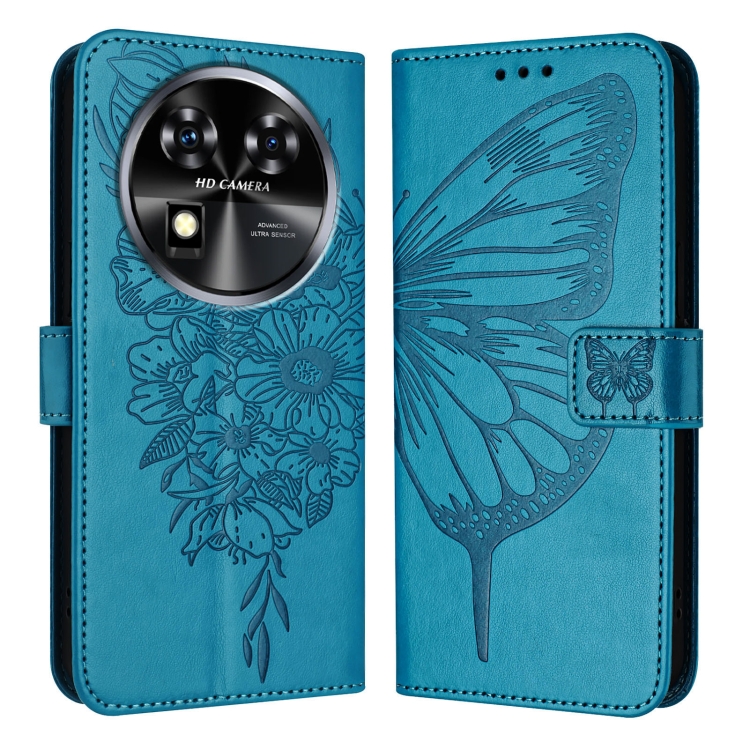 Funda de Cuero para Oukitel C37 con Mariposa en Relieve (Azul)