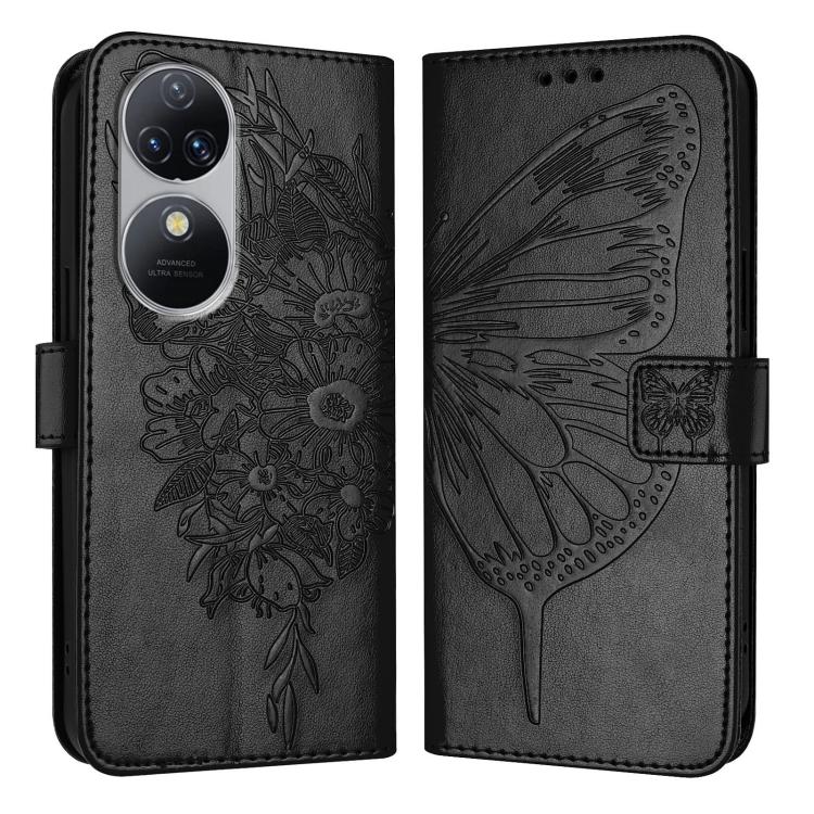 Funda de Cuero para Oukitel C38 con Mariposa en Relieve (Negro)