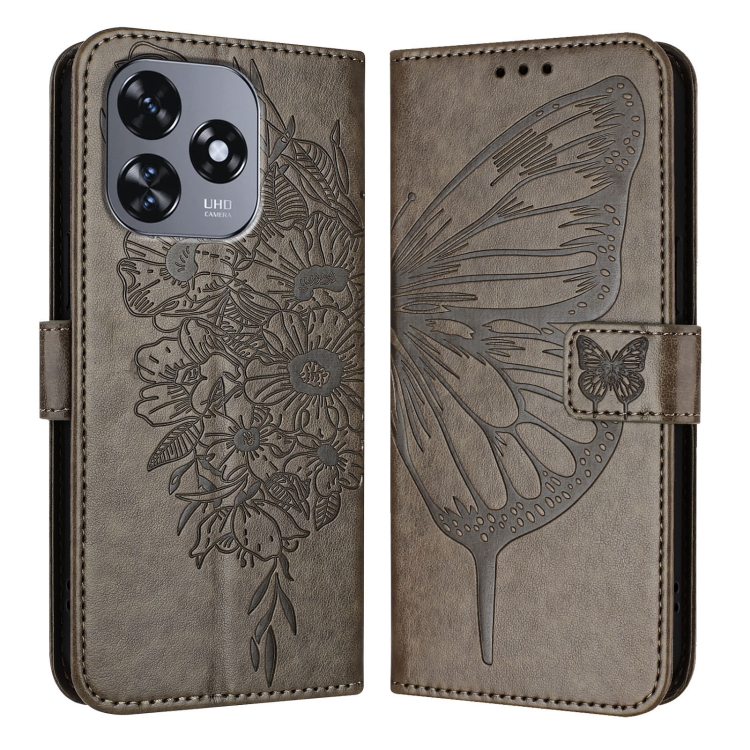Funda de Cuero para Oukitel C51 con Mariposa en Relieve (Gris)