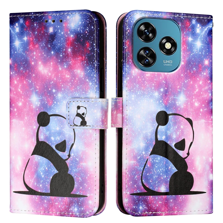 Funda para Oukitel C51 de Cuero Tejido Liso con Dibujo de Colores (Baby Panda)