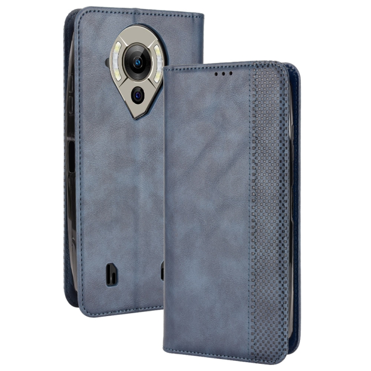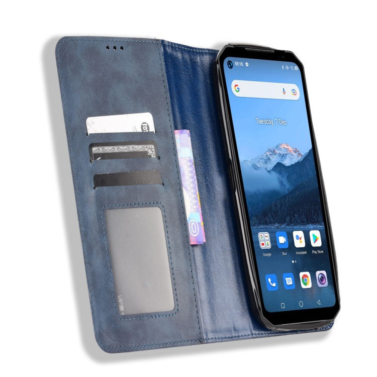 Funda de Cuero para Oukitel Wp16 con Hebilla Magnética y Textura Retro (Azul)