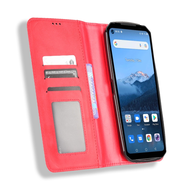 Funda de Cuero para Oukitel Wp16 con Hebilla Magnética y Textura Retro (Rojo)