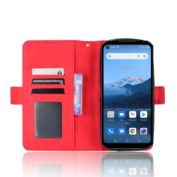 Funda de Cuero para Oukitel WP16 con Ranuras para Tarjetas y Textura Becerro (Rojo)