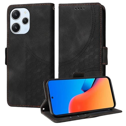 Para Redmi 12 4G / 5G / Note 12R Funda para Teléfono de Cuero Estrellado con Rombos En Relieve (Negro)
