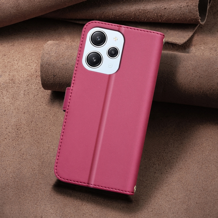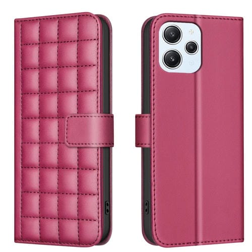 Para Redmi 12 4G Funda de Cuero con Textura Cuadrada (Rojo)