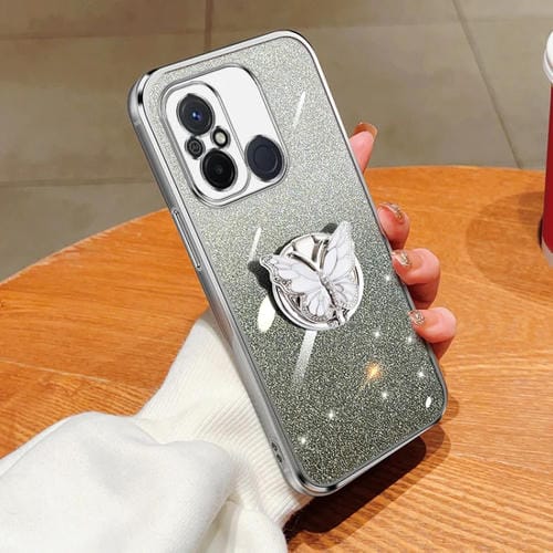 Para Redmi 12C Estuche para Teléfono de TPU con Soporte de Mariposa con Brillo Degradado Plateado (Plata)