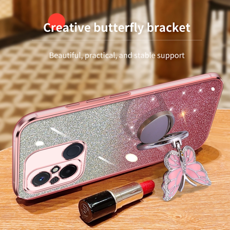 Para Redmi 12C Funda para Teléfono de TPU con Soporte de Mariposa con Brillo Degradado Plateado (Azul Sierra)