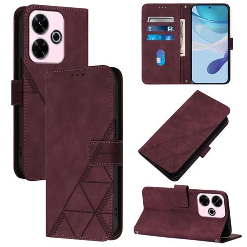 Para Redmi 13 4G / Note 13R Funda para Teléfono de Cuero con Tapa En Relieve 3D Cruzada (Rojo Vino)