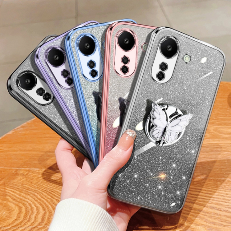 Para Redmi 13C Estuche para Teléfono de TPU con Soporte de Mariposa con Brillo Degradado Plateado (Negro)