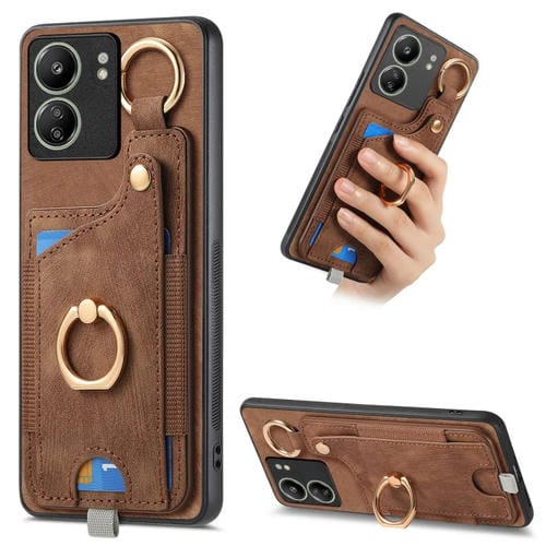 Para Redmi 13C Funda para Teléfono con Bolsa para Tarjeta con Anillo y Sensación de Piel Retro con Lazo para Colgar (Marrón)