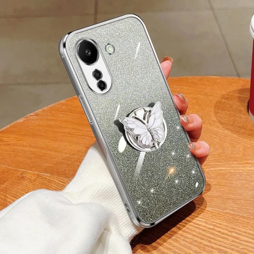 Para Redmi 13C Funda para Teléfono de TPU con Soporte de Mariposa con Brillo Degradado Plateado (Plata)