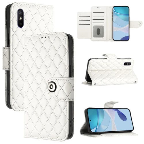 Para Redmi 9A / 9I / 9At Funda para Teléfono con Tapa de Cuero con Textura Rómbica y Cordón (Blanco)