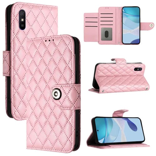 Para Redmi 9A / 9I / 9At Funda para Teléfono con Tapa de Cuero con Textura Rómbica y Cordón (Rosa)