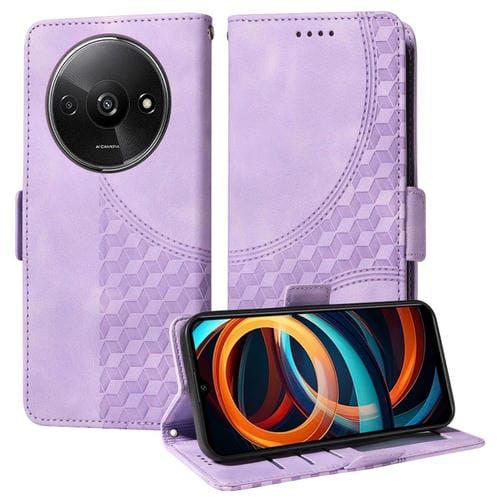 Para Redmi A3 4G Funda de Teléfono de Cuero Estrellado con Rombo En Relieve Global (Púrpura)