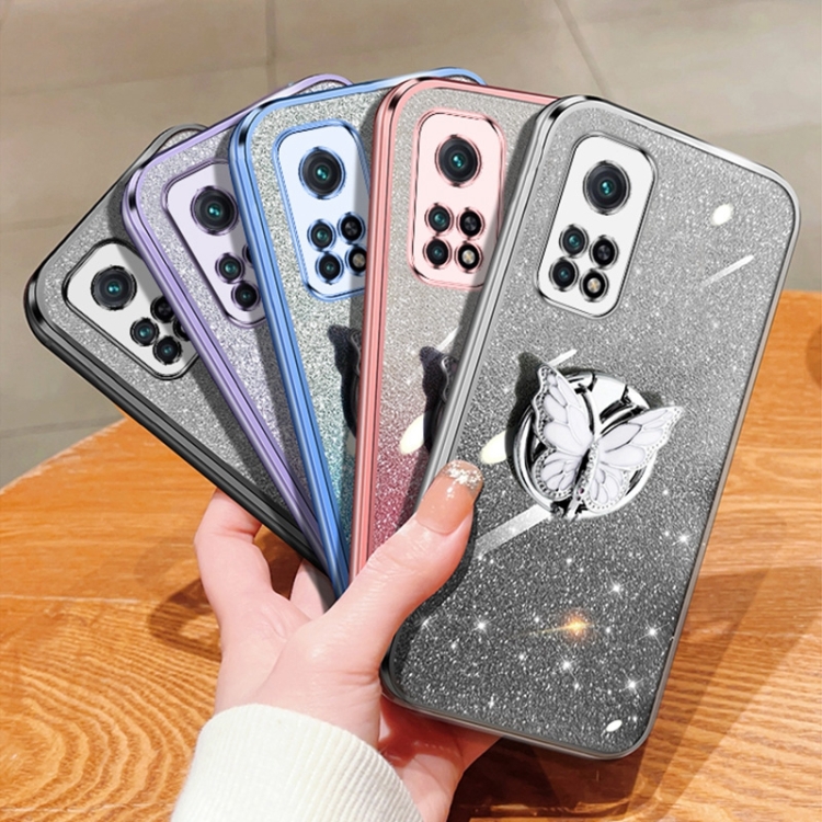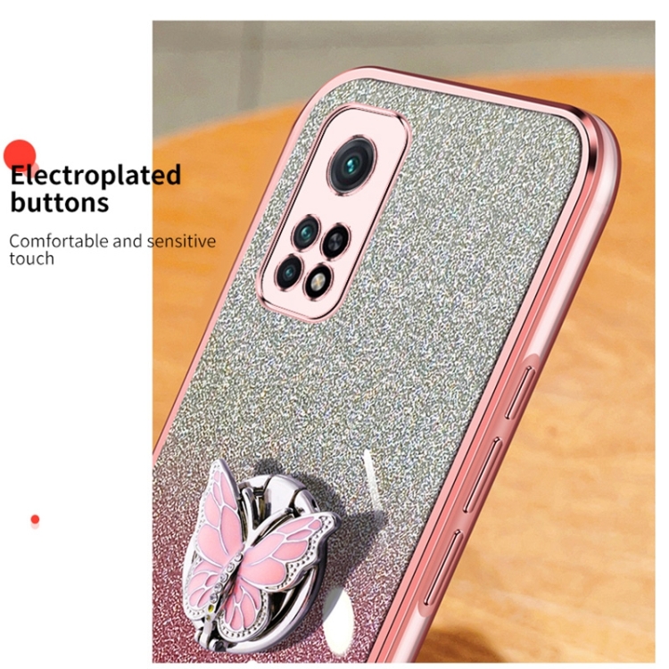 Para Redmi K30S / K30S Funda para Teléfono de TPU con Soporte de Mariposa con Brillo Degradado Ultra Plateado (Púrpura)