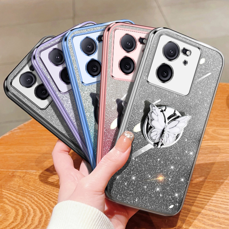 Para Redmi K60 Funda para Teléfono de TPU con Soporte de Mariposa con Brillo Degradado Ultra Plateado (Negro)