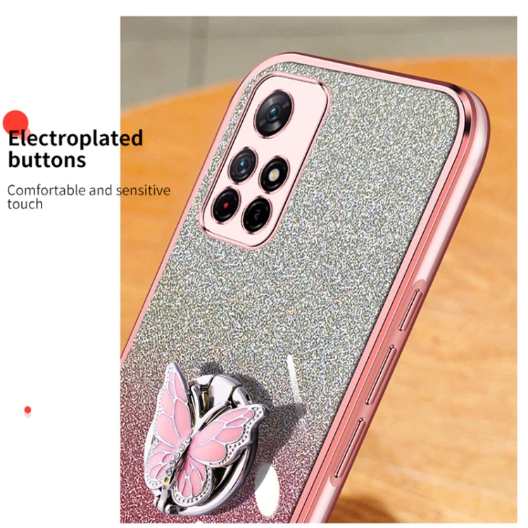 Para Redmi Note 11 5G Estuche para Teléfono de TPU con Soporte de Mariposa con Brillo Degradado Plateado (Púrpura)