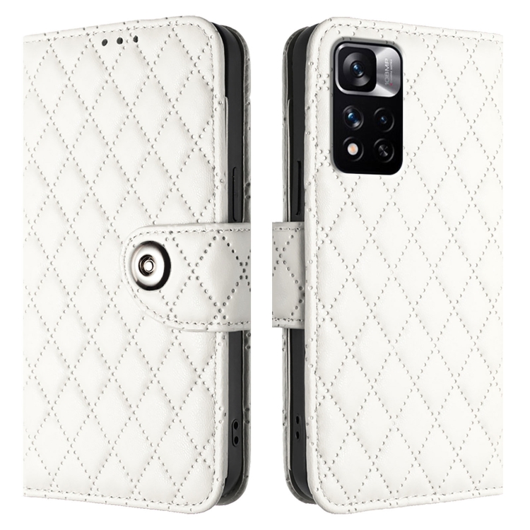 Para Redmi Note 11 Pro + 5G Eu Funda de Cuero con Tapa con Textura Romboidal y Cordón (Blanco)