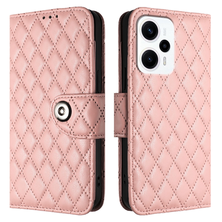 Para Redmi Note 11T Pro + / 12T Pro Funda para Teléfono con Tapa de Cuero con Textura Rómbica y Cordón (Rosa Coral)