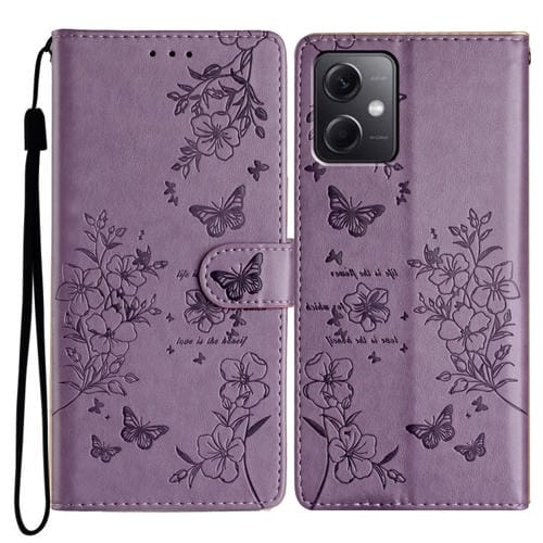 Para Redmi Note 12 5G Funda de Cuero para Teléfono con Mariposas y Flores Globales (Púrpura)