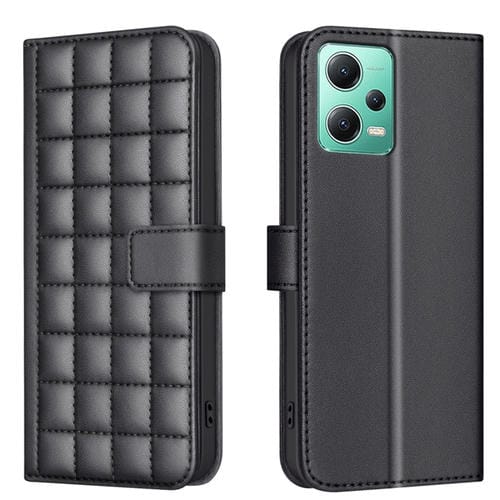 Para Redmi Note 12 5G Global / Xiaomi Poco X5 Funda de Cuero para Teléfono con Textura Cuadrada (Negro)