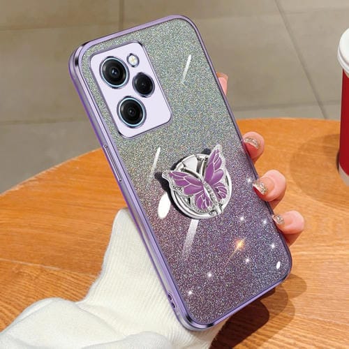 Para Redmi Note 12 Pro Estuche para Teléfono de TPU con Soporte de Mariposa con Brillo Degradado y Chapado En Velocidad (Púrpura)
