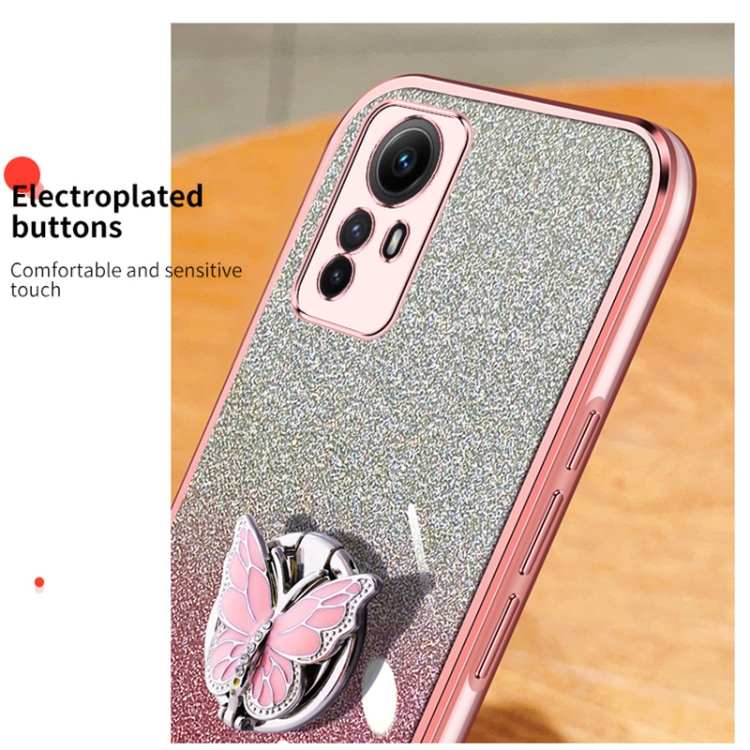 Para Redmi Note 12S Funda para Teléfono de TPU con Soporte de Mariposa con Brillo Degradado Plateado (Plata)