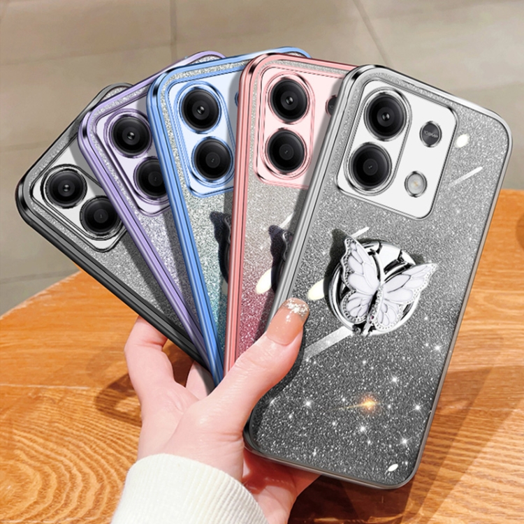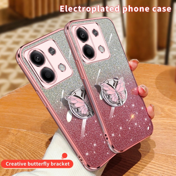 Para Redmi Note 13 Funda para Teléfono de TPU con Soporte de Mariposa con Brillo Degradado Plateado (Plata)