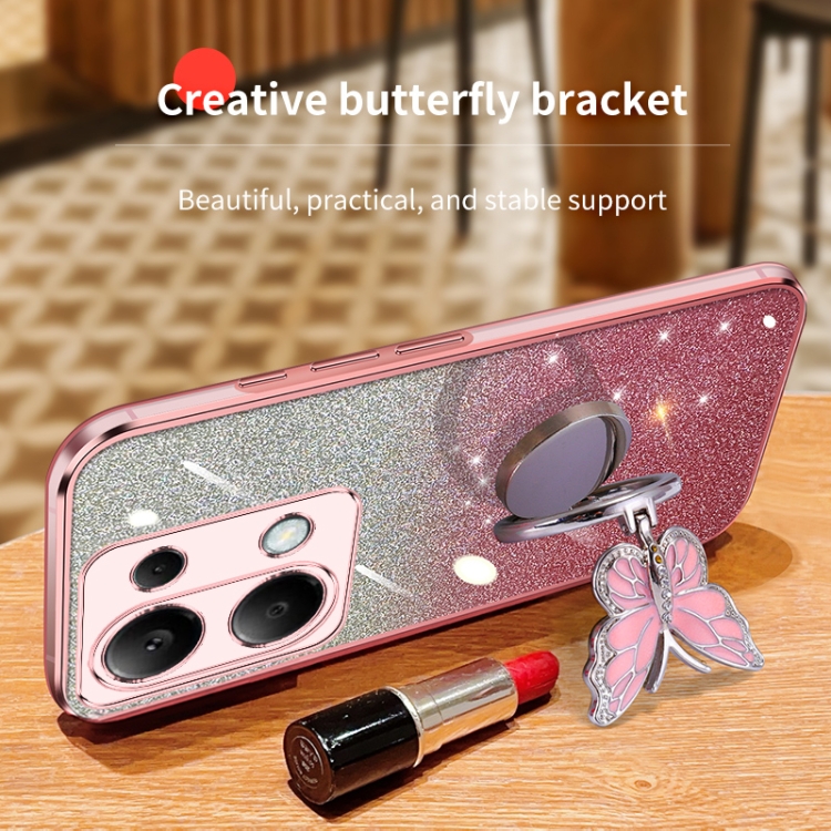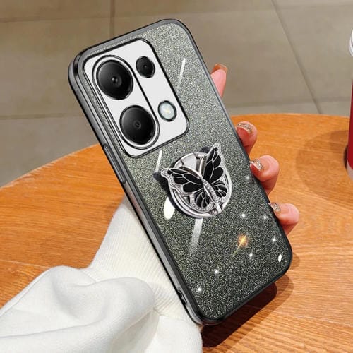 Para Redmi Note 13 Pro 4G Estuche para Teléfono de TPU con Soporte de Mariposa con Brillo Degradado Plateado (Negro)