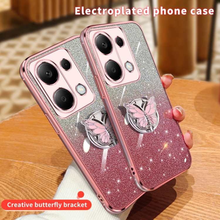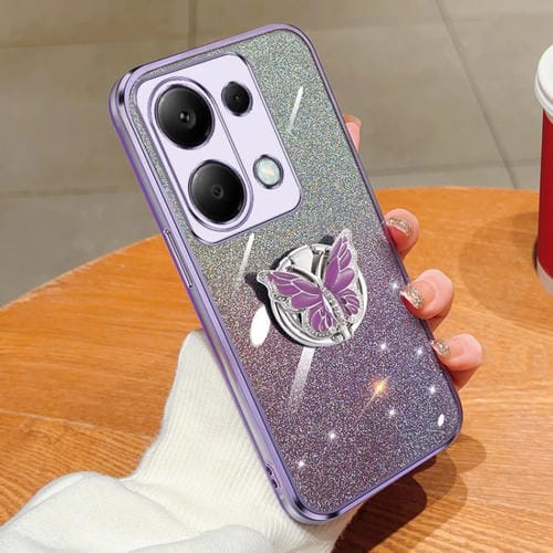 Para Redmi Note 13 Pro 4G Estuche para Teléfono de TPU con Soporte de Mariposa con Brillo Degradado Plateado (Púrpura)