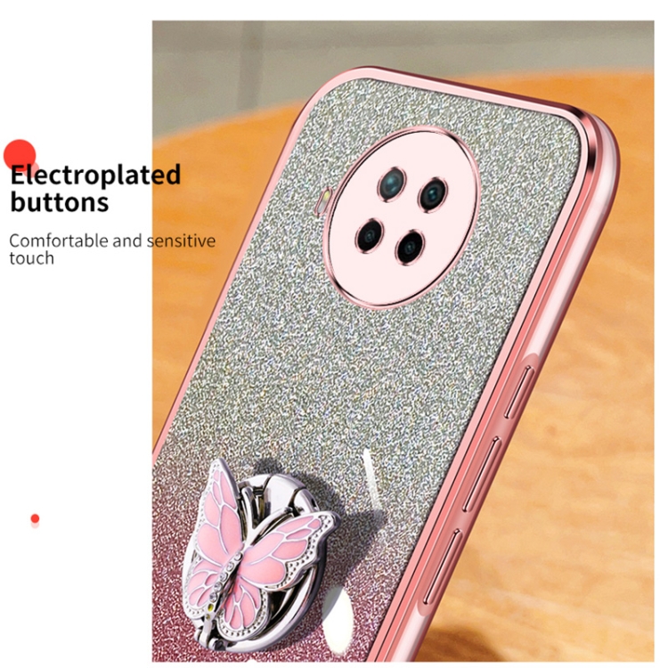 Para Redmi Note 9 Pro 5G Funda para Teléfono de TPU con Soporte de Mariposa con Brillo Degradado Plateado (Azul Sierra)
