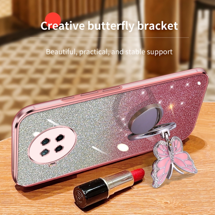 Para Redmi Note 9 Pro 5G Funda para Teléfono de TPU con Soporte de Mariposa con Brillo Degradado Plateado (Negro)