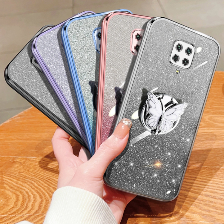 Para Redmi Note 9S Funda para Teléfono de TPU con Soporte de Mariposa con Brillo Degradado Plateado (Azul Sierra)