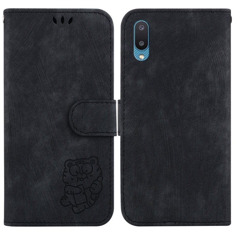 Para Samsung Galaxy A02 / M02 India 4G Funda para teléfono de cuero con relieve Little Tiger (negro)