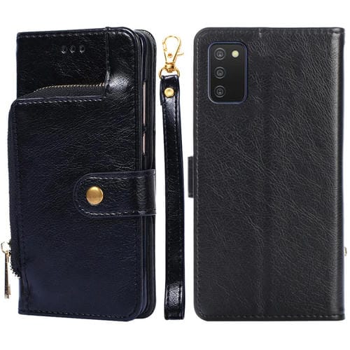 Bolsa de Cremallera para Samsung Galaxy A03S Funda de Cuero con Soporte y Ranuras para Tarjetas (Negro)