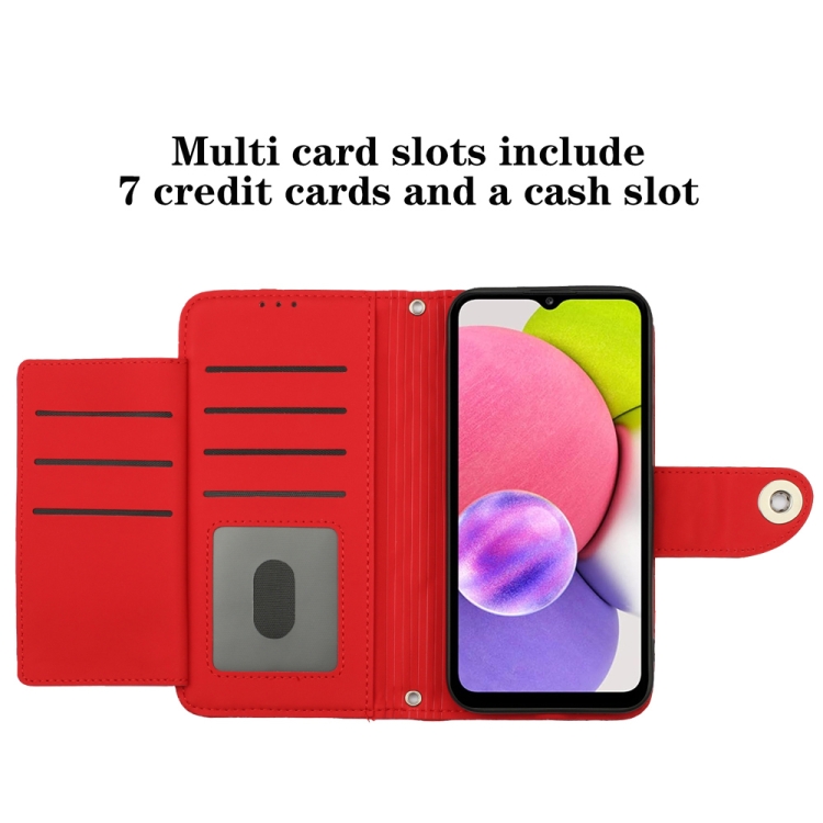 Funda de Cuero para Samsung Galaxy A03S Eu con Tapa Textura Rómbica y Cordón (Rojo)