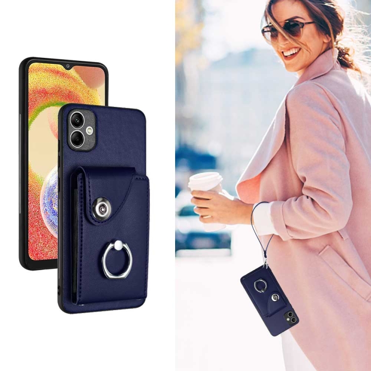 Bolsa para Tarjeta para Samsung Galaxy A04 4G Funda con Soporte para Anillo y Cordón (Azul)