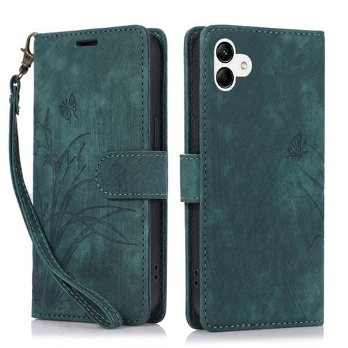 Funda para Teléfono Samsung Galaxy A04 A04S Cuero Relieve Mariposa Orquídea (Verde)