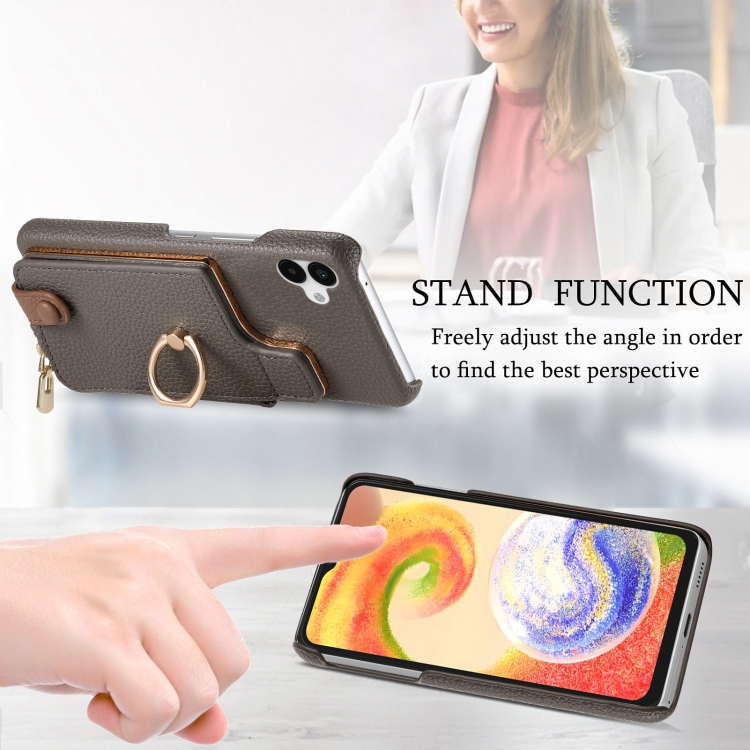 Funda para Teléfono Samsung Galaxy A04 Litchi Leather Oil Edge Ring Zipper Wallet Back (Gris)